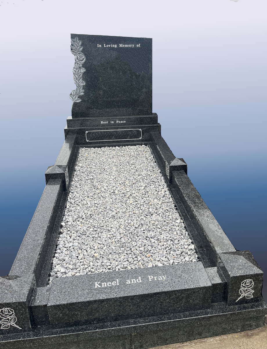 We can make any type of headstone or grave memorial to order. If you have a special headstone design in mind call us to discuss your requirements. We also have a large stock of standard headstones to chose from in wide variety of styles and coloured granite.